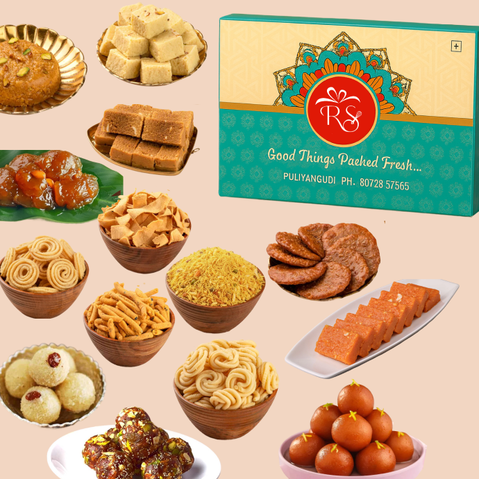 Wheat Halwa | Srivilliputhur Palkhova | Gulab Jamun | Milk Cake | Kala Kandh | Carrot Mysore Pak | Rava Laddu | Dated Laddu | Traditional Mixture | Milagu Sev | Ribbon Pakkoda | Ghee Murukku | Thengai Paal Murukku | Athirasam